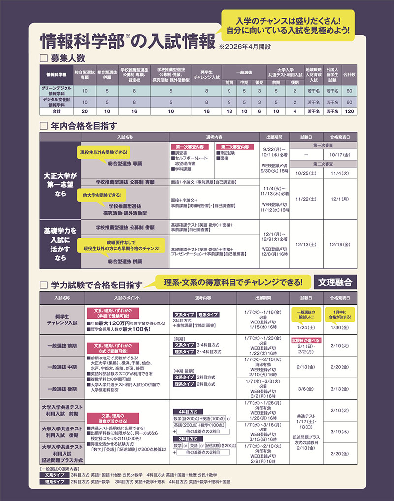 また、多様な価値観を持つ人々との協働によって、未来社会をデザインするための総合的な能力を養い、情報技術を使って社会の課題を解決し、新しい価値を生み出せる人材を社会に送り出します。