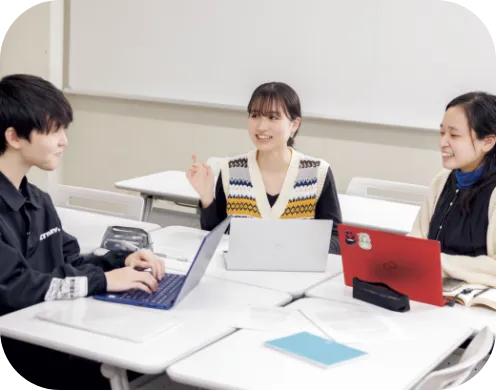 授業ごとに2名の教員に加え、大正大学独自の養成講座によって育成・採用した質の高いチューターを配置したチームで、学生一人ひとりの学修をフルサポート。授業内外で学生が学びの意欲・習慣・技術を身につけられるよう支援しています。