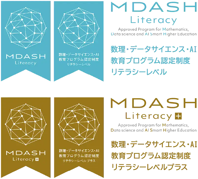 このプログラムは、「数理・データサイエンス・AI教育プログラム(リテラシーレベル)プラス」として、文部科学省から認定されています。